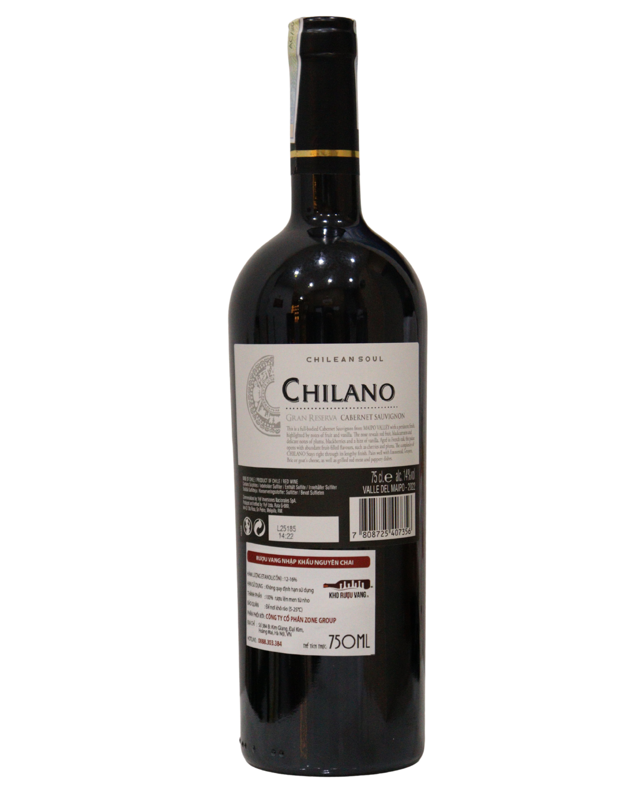 Rượu vang Chilano Cabernet Sauvignon là niềm tự hào của Chile – biểu tượng cho văn hóa rượu vang trẻ trung và sôi động. Với thiết kế tinh tế, giá hợp lý và chất lượng tuyệt hảo, Chilano nhanh chóng chinh phục người yêu vang toàn cầu. Hương thơm hòa quyện giữa việt quất, dâu tây, anh đào đỏ cùng gỗ sồi, tiêu, quế và sô cô la tạo nên vị vang tròn đầy, sâu lắng. Nồng độ 13.5% mang lại cảm giác say mê, quyến rũ. Khi thưởng thức cùng thịt đỏ, pizza hay xúc xích ở 16–18°C, chai vang này mang đến một trải nghiệm ẩm thực hoàn hảo và tinh tế.
